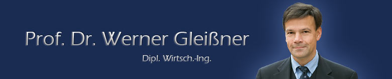 Ein Forschungsschwerpunkt ist wertorientierte Unternehmensführung auf Basis von Bewertungsverfahren für unvollkommene Kapitalmärkte, die unternehmensinterne Risikoinformationen nutzen und nicht auf historische Kapitalmarktdaten angewiesen sind (wie CAPM). Seit seiner Promotion (Geldpolitik, Ökonometrie und Handlungstheorie) in Volkswirtschaftslehre ist er Lehrbeauftragter und seit 2014 Honorarprofessor an der Technischen Universität Dresden (Betriebswirtschaftslehre, insbesondere Risikomanagement). Er ist im Vorstand der Deutschen Gesellschaft für Krisenmanagement e.V., im Vorstand der European Association of Certified Valuators and Analysts (EACVA), Mitglied in der Schmalenbach-Gesellschaft, im Controller-Verein und im Beirat der RMA Risk Management & Rating Association e.V. (RMA). Werner Gleißner war Stipendiat der Studienstiftung des Deutschen Volkes und in deren Auswahlausschuss tätig. |